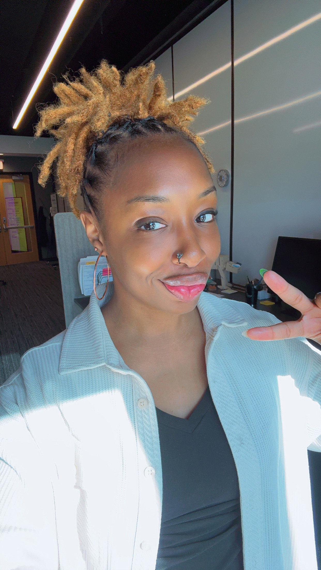 This journey has also been a huge lesson in patience and self-love. If I’m being honest, patience isn’t my strongest trait. Even now, I find myself saying, “I can’t wait until they’re longer so I can try new styles!” But I’ve learned to appreciate every stage, to love my hair as it is in the moment. One of my favorite ways to wear my locs is just letting them be—no elaborate styling, no extra manipulation—just free. That’s when I feel the most like myself.